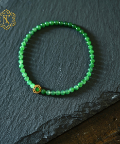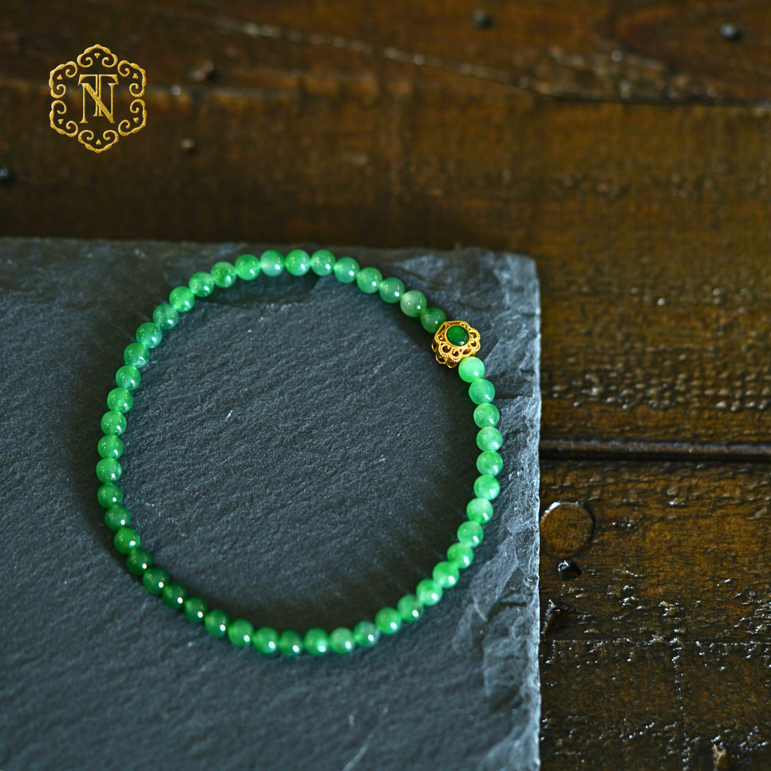 Chuỗi ngọc phỉ thuý băng xanh cây phiêu hoa size 3.8mm, phối charm vàng 18K là lựa chọn dành cho những ai thích vẻ đẹp nhẹ – trong – nhưng vẫn có điểm nhấn riêng.