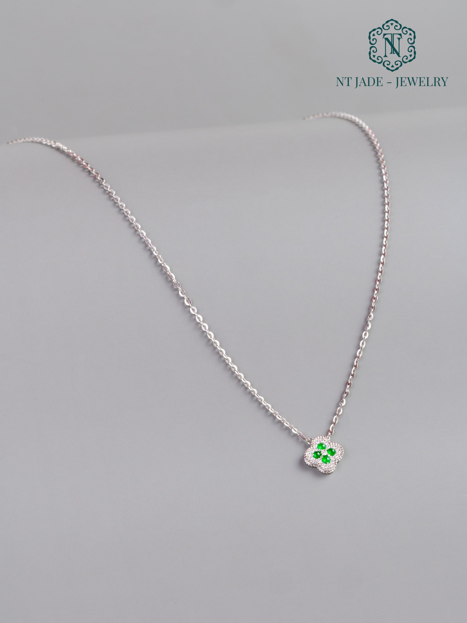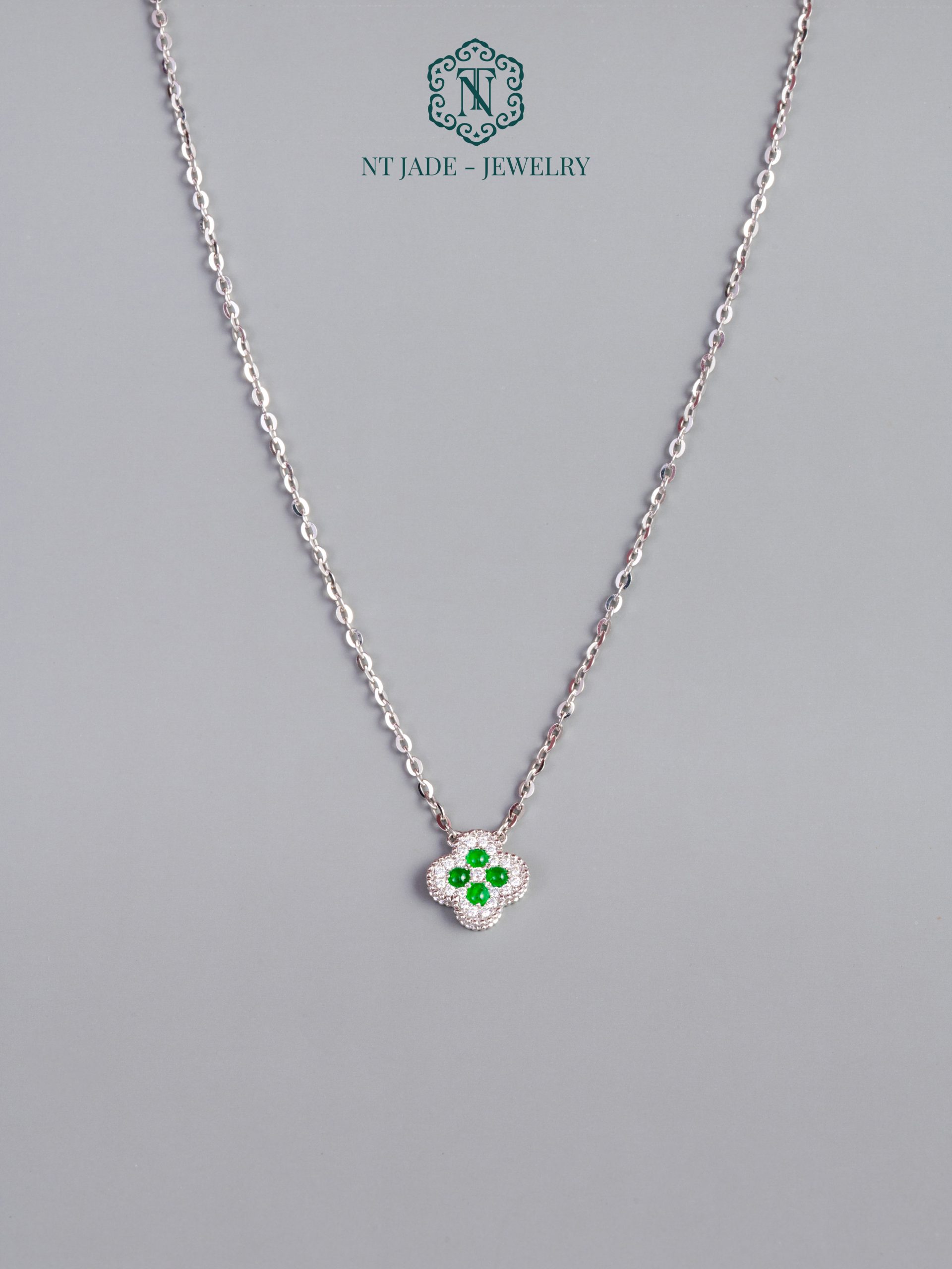 Dây chuyền phỉ thuý cỏ 4 lá may mắn
