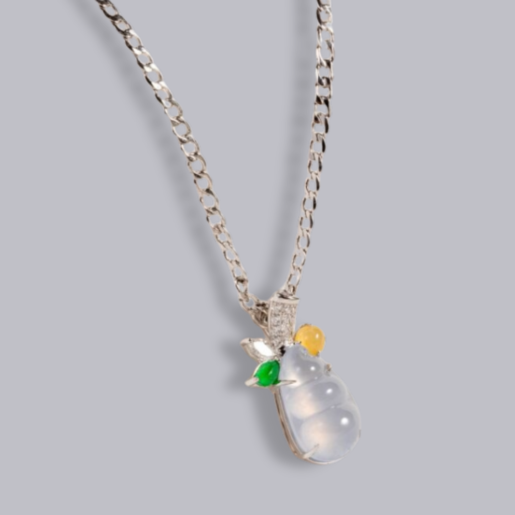 Màu tím nhạt của ngọc phỉ thúy tựa như tinh vân bí ẩn nơi bầu trời đêm, vừa lãng mạn, vừa sang trọng. Dưới ánh sáng, từng đường cong và chi tiết nhỏ của mặt dây chuyền đều trở nên sống động, cuốn hút. Đây là mẫu trang sức dễ dàng phối hợp với nhiều phong cách – từ thanh lịch nơi công sở đến quyến rũ trong những buổi tiệc sang trọng.