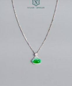 Bề mặt ngọc cao băng trong suốt, ánh sáng đi qua khối ngọc khiến từng vân phiêu hoa hiện lên mềm mại, sống động. Khi kết hợp với ánh lấp lánh từ kim cương, toàn bộ mặt dây chuyền trở nên nổi bật, sang trọng và đầy cuốn hút. Đây là mẫu trang sức hoàn hảo cho những ai yêu thích sự thanh nhã nhưng vẫn muốn khẳng định phong cách riêng biệt.