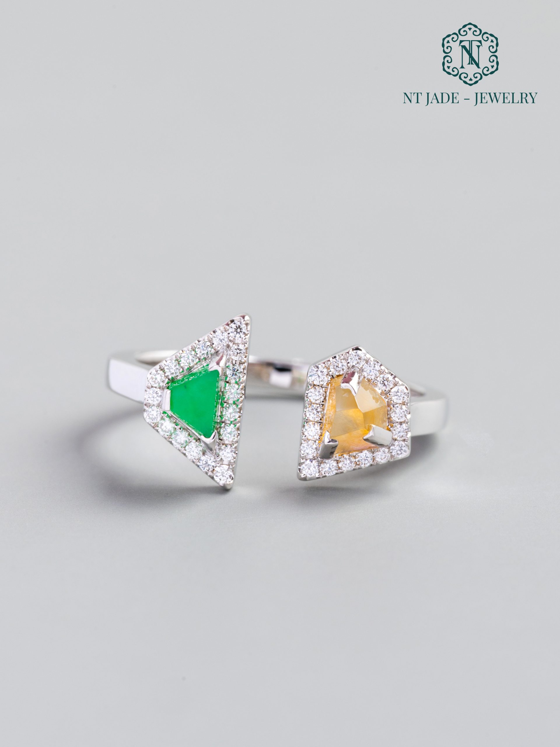 👉 Với sự kết hợp hoàn mỹ giữa kim cương thiên nhiên và phỉ thúy băng chủng, Nhẫn Đối Song Phi không chỉ đơn thuần là một món trang sức, mà còn là biểu tượng của sự tinh tế, sang trọng và đẳng cấp. Đây chắc chắn là lựa chọn hoàn hảo dành cho những ai muốn khẳng định phong cách và gu thẩm mỹ thời thượng.