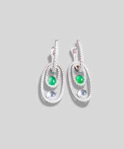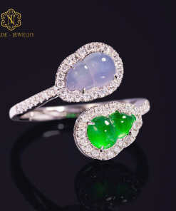 Thiết kế mở với hai viên ngọc phỉ thuý thiên nhiên – một xanh ngọc lục, một tím lam – tượng trưng cho sự cân bằng và hài hòa.