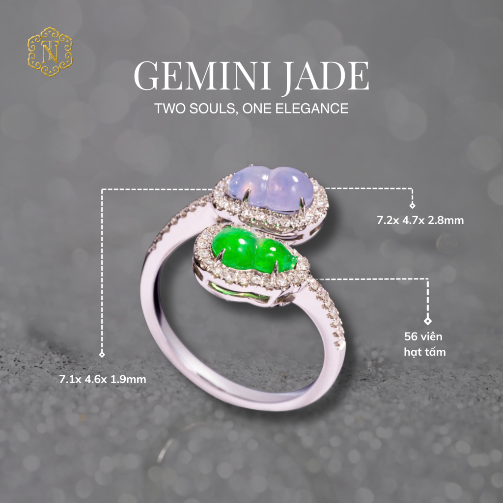 🌿 Nhẫn Gemini Jade – Biểu tượng của Sự Hài Hòa và May Mắn Song Hành