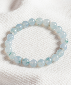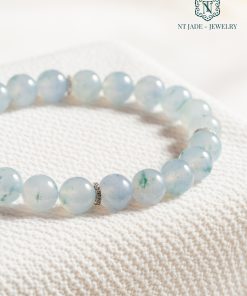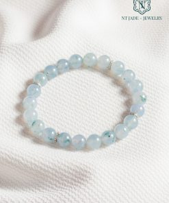 Chuỗi tay ngọc nền tím phiêu hoa xanh, size hạt 7,9mm, dành cho cổ tay 16-17cm