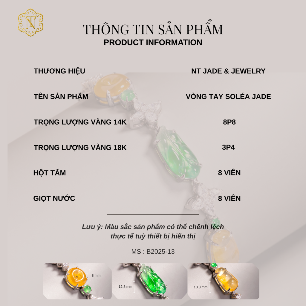Khám phá Vòng Tay Soléa Jade – thiết kế tinh tế từ ngọc phỉ thúy thiên nhiên Myanmar và vàng 14K – 18K. Sang trọng, thanh lịch, hoàn hảo cho phong cách hiện đại.