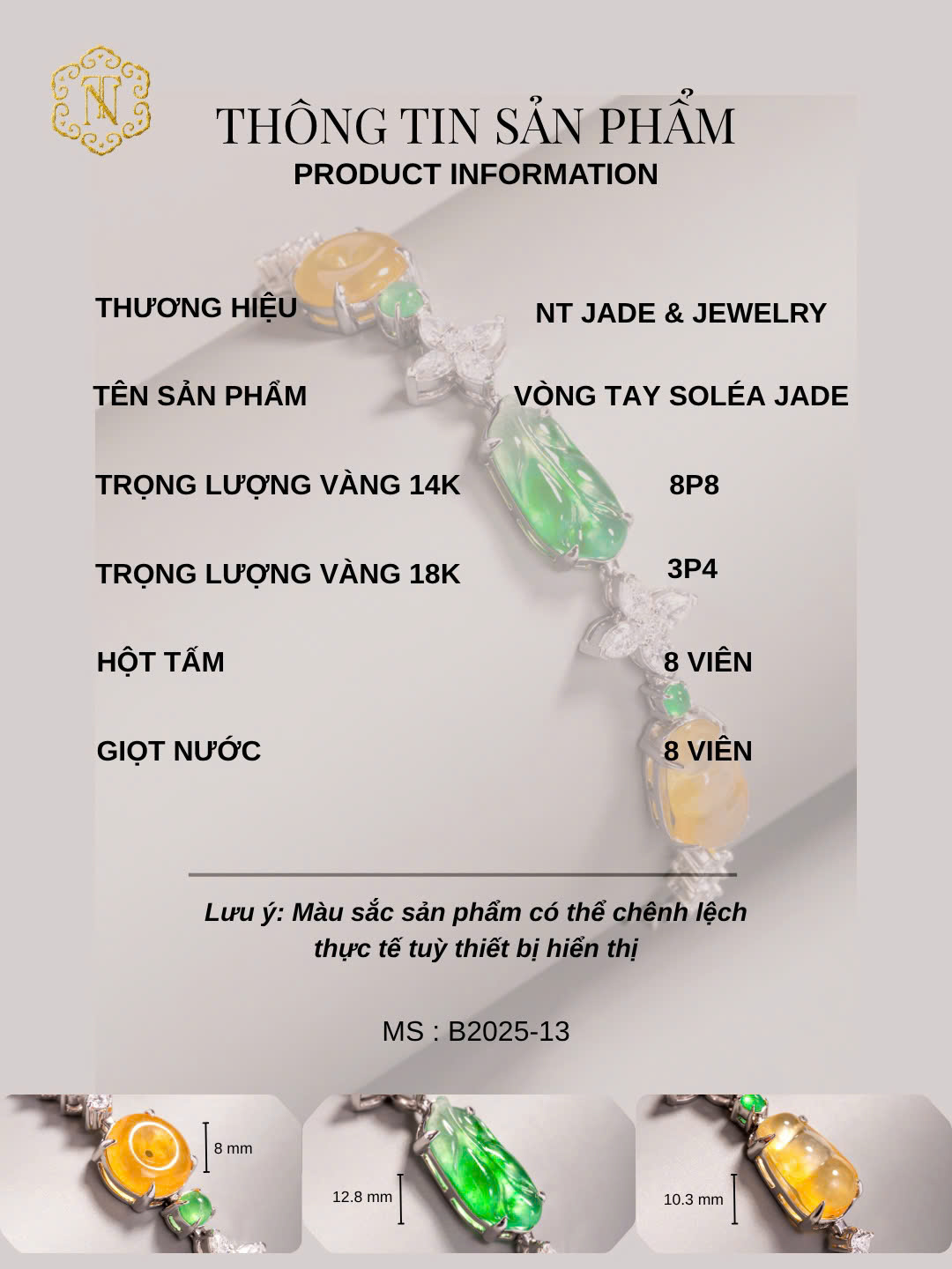 Vòng Tay Soléa Jade – Tinh Hoa Của Vẻ Đẹp Thanh Lịch, là một trong những thiết kế nổi bật của NT Jade & Jewelry, mang phong cách tối giản mà tinh xảo, kết hợp hài hòa giữa ngọc phỉ thúy thiên nhiên Myanmar và vàng 14K – 18K cao cấp.